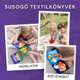 Színpompás, 3D-s, BPA-mentes tapintható elemekkel kiegészített könyvecske, amely támogatja a finommotorika fejlődését és az érzékszervi észlelést – tökéletes a világ érintés általi felfedezéséhez.