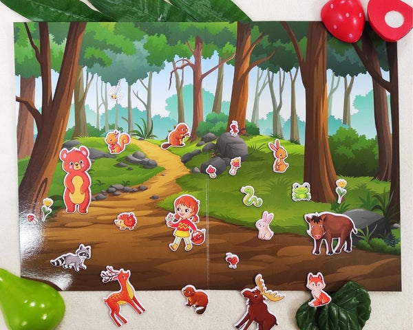 Az aranyos matricás szett háttere erdőt ábrázol.