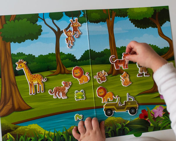 Az aranyos matricás szett háttere szafarit ábrázol.