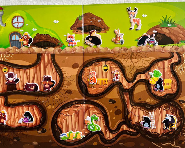A matricás szett kétoldalas háttere föld alatt rejtőző élővilágot ábrázol.