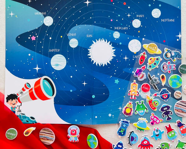 A matricás szett kétoldalas hátteret tartalmaz, egyik oldalon a Naprendszert a másikon egy idegen bolygót ábrázol.