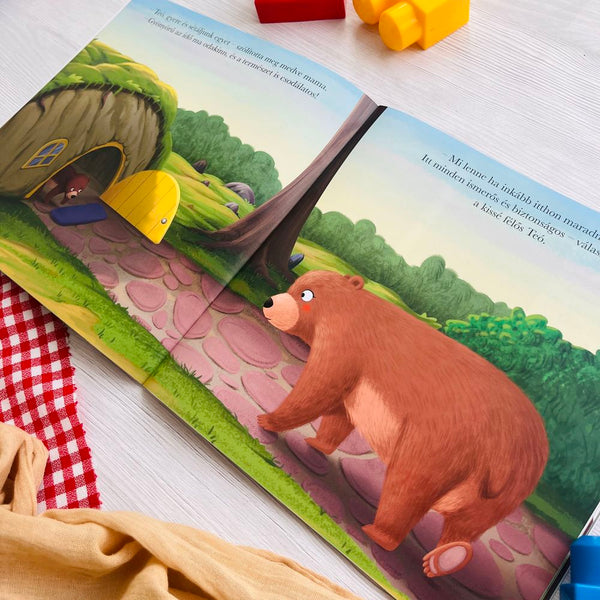 Teó, a medve, úgy véli, hogy a világ túl nagy és ijesztő. Állandóan fél valamitől, és nem szívesen hagyja el a biztonságos otthonát. Fél, hogy elcsúszik a vízen, megbotlik egy kőben vagy leesik egy fáról. Szerencsére egy napon találkozik róka Rózával, aki a legjobb barátjává válik, és meghívja őt egy ottalvós születésnapi bulira. Teó, összeszedve minden bátorságát beleegyezik, viszont éjszaka hiányozni kezd neki az anyukája. Másnap nagyon szomorú lesz amiatt, hogy nem tudta legyőzni a félelmét. Róza rendkívüli ajándékot készít neki - egy félelmet enyelő dobozt. De mire is jó ez a doboz? Tarts velük, hogy megtudd!