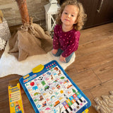Ismerd meg az angol ABC betűit, a számokat, szavak kiejtését a 41 x 55,5 cm méretű, 26 nyomógombot tartalmazó interaktív poszter segítségével! Továbbá gyermekdalokat és egyszerű feladatokat is kínál!
