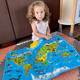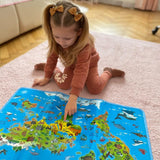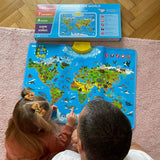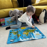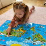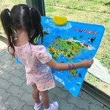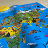 Ismerd meg a világ állatait ezzel a70×48 cm méretű, 105 állatot ábrázolótérkép - interaktív poszter segítségével! A világtérképen földrészek és óceánok alapján elosztva mutatjuk be az adott kontinensen elő állatokat.