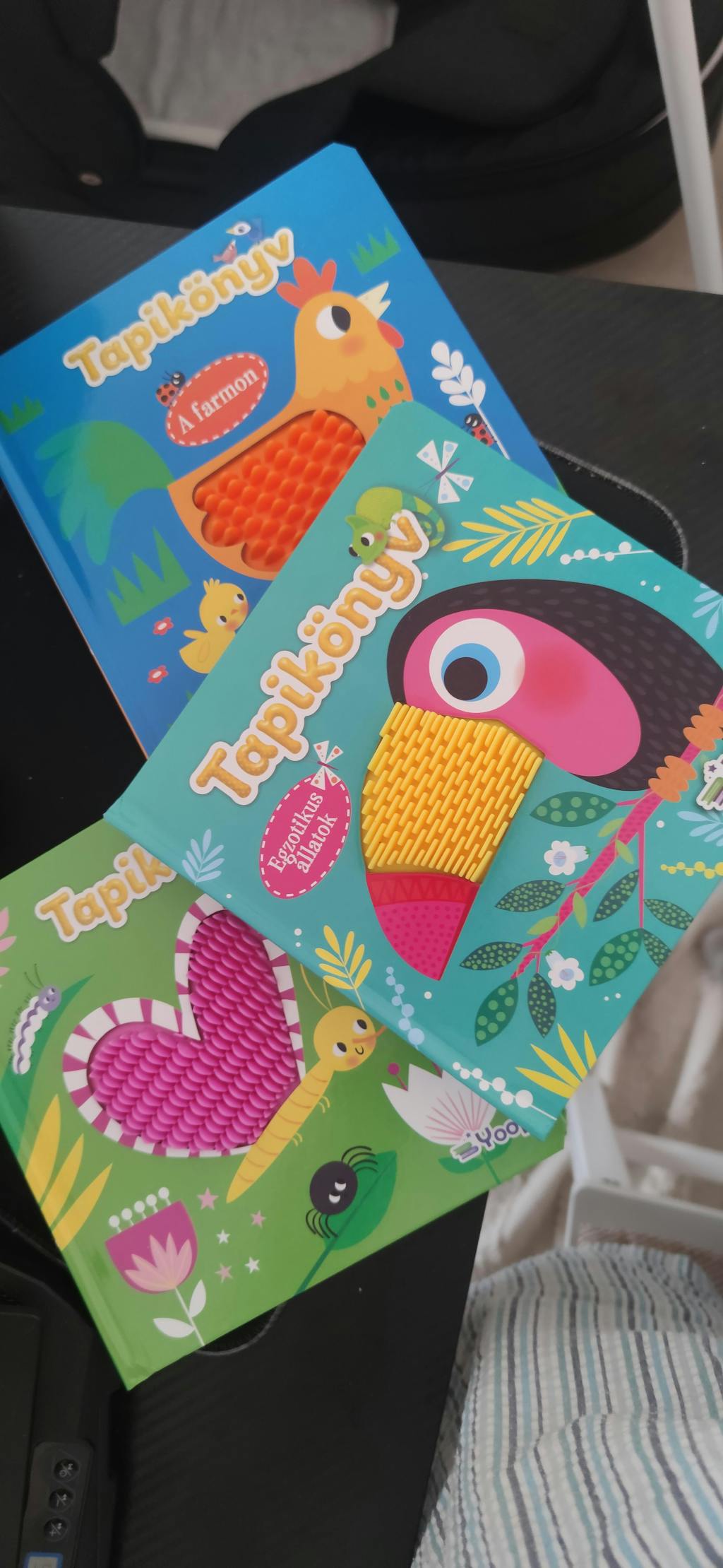 Vastag, szép könyv, sajnos mindegyik "tapi" rész csak gumi. A leírásból nekem ez nem volt egyértelmű, jobban örültem volna, ha más textúrákat is tartalmaz. Ha tudom, hogy csak gumi, nem rendelem meg a csomagot, csak 1 db ot. Sajnos nem láttam korabban a videót róla, de a szövegben lévő " 3D hatású elemek" leírásból én azt hittem, mas is lesz bennük. Ezért csalódás egy kicsit, de még így is szerethető könyvek.