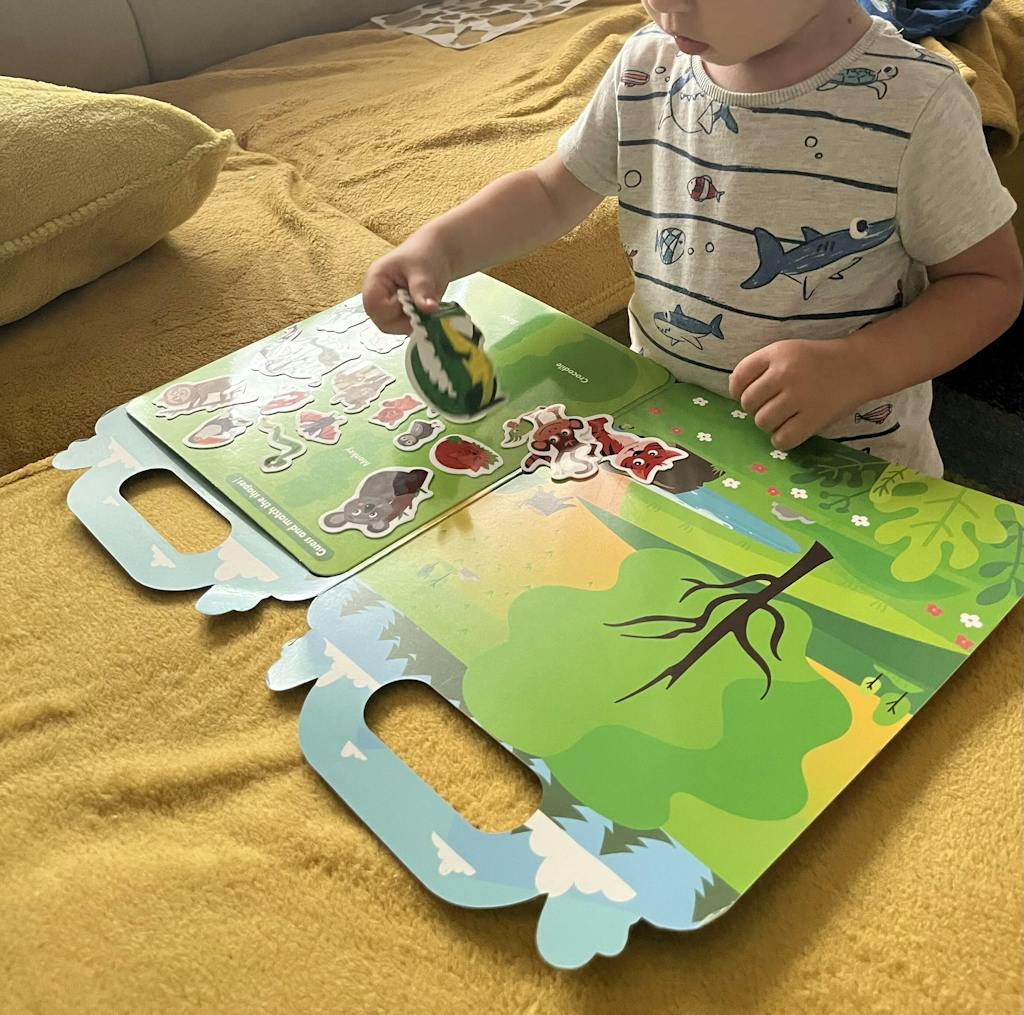 Másfél éves gyermekem részére rendeltem a matricákat, aki imádja őket! Hosszú perceken keresztül lefoglalja, imádja pakolgatni őket az albumon belül és a lakás többi részén is! :D szerencsére a matricák remekül bírják a strapát!